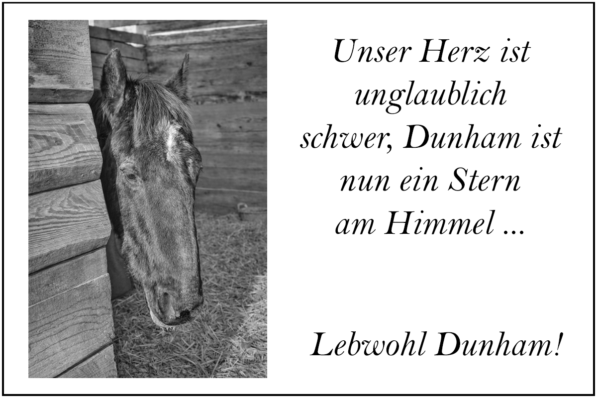 Unser Herz ist unglaublich schwer, Dunham ist nun ein Stern am Himmel. Wir haben mit ihm gekämpft und ihn dennoch verloren. Mit 32 Jahren mussten wir ihn loslassen, sein Körper, sein Geist konnten nicht mehr.